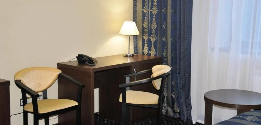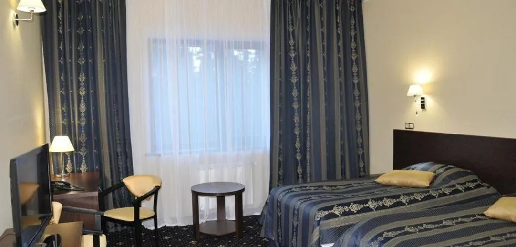 В номере: ванна, туалет, двуспальная кровать, шкаф, телевизор, письменный стол, стул (2 шт.), торшер, телефон, кондиционер, сейф, настольная лампа, мини-бар, фен, набор полотенец, Wi-Fi.