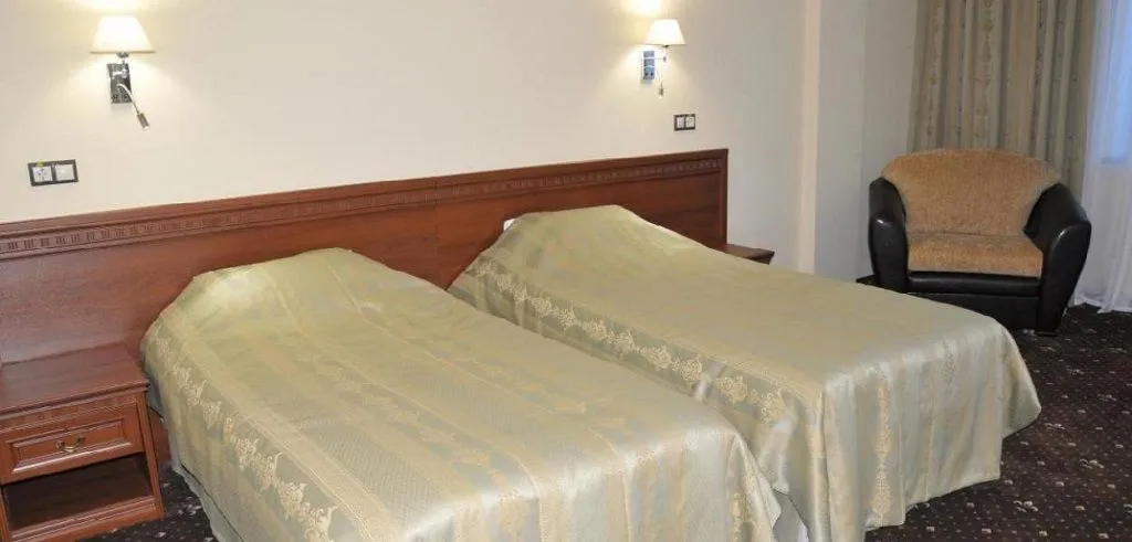 В номере: ванна, туалет, односпальная кровать (2 шт.), шкаф, телевизор, письменный стол, стул (2 шт.), торшер, телефон, кондиционер, сейф, настольная лампа, мини-бар, фен, набор полотенец, Wi-Fi.